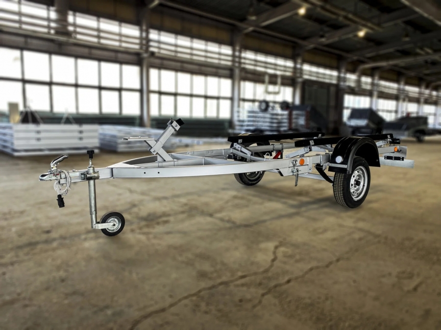 Рама – стальная профильная труба 80х40х3 мм. Конструкция рамы включает в себя несколько поперечин.Дышло - V образное.Покрытие рамы - кислотный грунт + покраска.Ложементы – брус 100х50 мм. Имеют регулировки по ширине и углу наклона.Ось – смещаемая.Подвеска - рессора ГАЗель, ступица ВАЗ 2108, амортизатор ВАЗ 2101.Лебедочный узел с носовым упором – есть продольная регулировка и регулировка по высоте. Прицеп для перевозки лодок и катеров. Небольшие габариты прицепа идеально подходят для перевозки небольших водных транспортных средств, длиной от носа до транца до 3 900 мм (Гидроцикл, лодки ПВХ). Функция самосвал упростит погрузку/спуск на воду судна, даже при пологом спуске. Регулировки ложементов по ширине и углу наклона, и регулировка лебедочного узла по длине и высоте позволяют использовать прицеп для перевозки лодок различной формы и размеров. Регулировка оси дает возможность идеально сбалансировать прицеп. Простота конструкции и комплектующие отечественного производства обеспечивают долгий срок службы прицепы и легкую замену деталей, в случае их повреждения. Гарантия 12 месяцев.